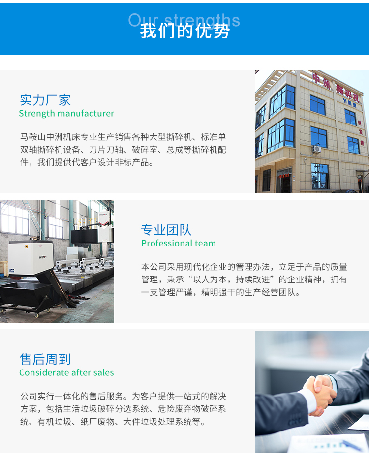大型雙軸撕碎機(jī)由電機(jī)、硬齒面減速機(jī)、旋轉(zhuǎn)刀軸、進(jìn)口的動刀、定刀、機(jī)架、機(jī)座、箱體、工 作平臺等主要結(jié)構(gòu)組成。雙軸撕碎機(jī)的主要功能是通過切割,撕裂和擠壓大容量材料以及不便于通過雙軸撕碎機(jī)運(yùn)輸?shù)拇笾睆焦牟牧蟻頊p少材料。大型雙軸撕碎機(jī)不僅提高了生產(chǎn)能力和破碎效率,而且擴(kuò)大了應(yīng)用范圍。大型雙軸破碎機(jī)產(chǎn)品在利用各種破碎機(jī)的優(yōu)點(diǎn)的基礎(chǔ)上,充分利用沖擊,剪切和相互沖擊。研磨和加工方法如磨削。