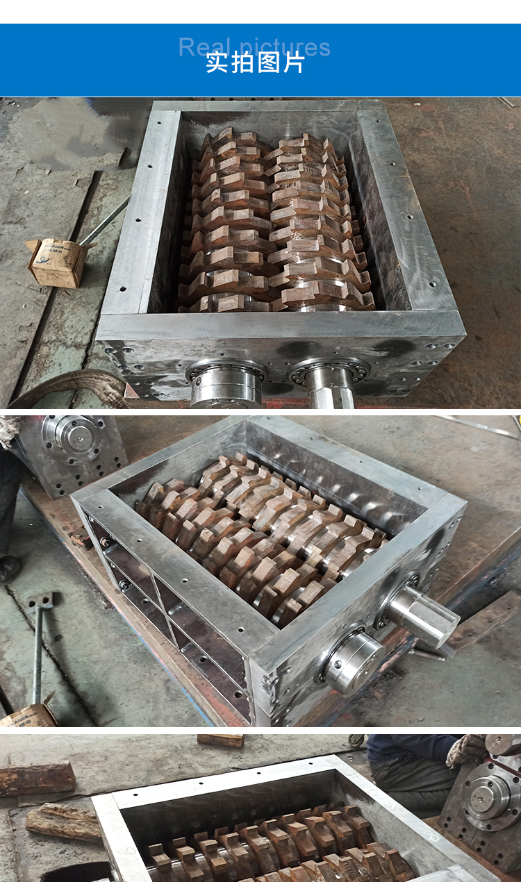 撕碎機(jī)刀箱用于破碎塑料、橡膠、纖維、紙張、木材、大型中空物料(塑料桶等大型容器)和各種混合廢料特別是含有金屬的廢料,或者是預(yù)碎含有泥沙等容易磨損刀具的廢料。比如:成卷薄膜、編織袋、電視機(jī)、冰箱売、木頭、轎車和中型汽車輪胎及中空桶類、追網(wǎng)、硬紙板、電路板等。刀具的厚度和刀爪數(shù)量可根據(jù)不同物料更換。破碎中空物料時可配備壓料裝置提高產(chǎn)量。另可添加旋轉(zhuǎn)篩網(wǎng)控制出料尺寸。